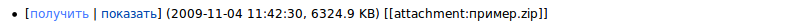 Если прав недостаточно, то действие в списке показано не будет: [получить | показать] (2009-11-04 12:08:06, 10.3 KB) [[attachment:пример.zip]]